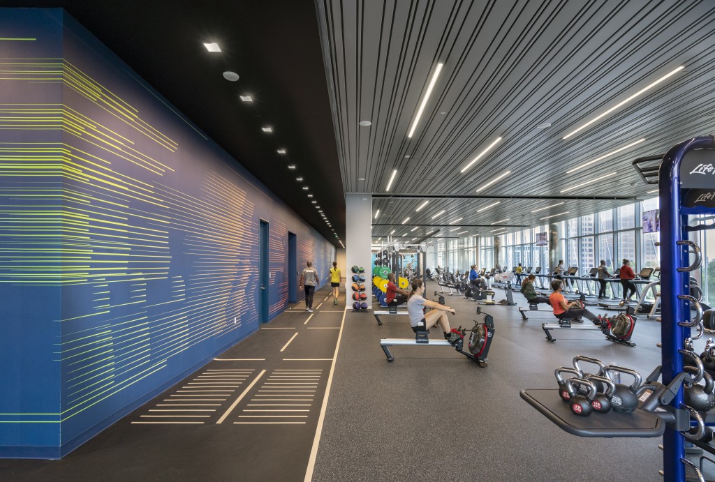 Office fitness centers foster a healthy and balanced work-life culture. Project: 600 Canal