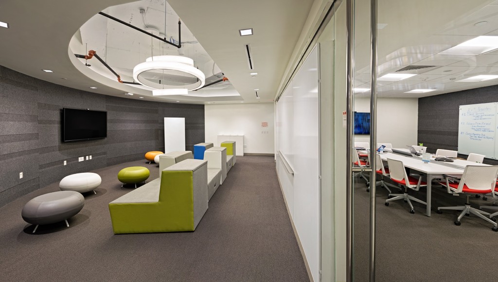 Modern office designs seamlessly blend collaborative meeting spaces with private work areas, offering employees the flexibility they need in today’s dynamic work environment. Project: ADP