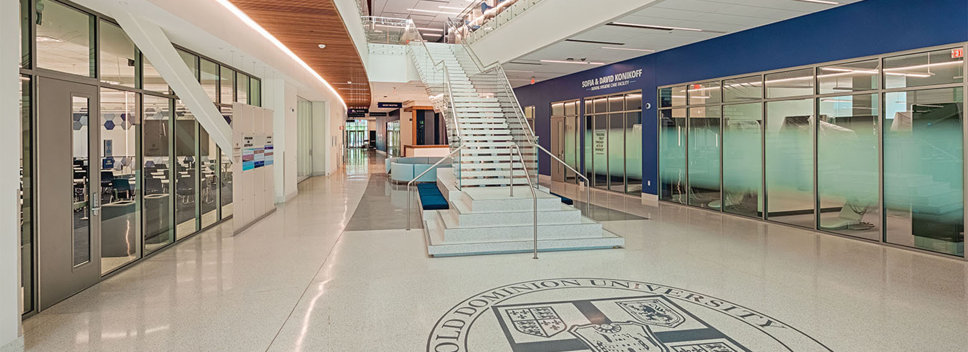 ODU sets the standard for career training in healthcare with the addition of the signature Health Sciences building to its growing campus. The Health Sciences building integrates a cross-disciplinary approach to the academic field, housing the schools of Dental Hygiene, Rehabilitation Science, and Medical Diagnostics and Translational Sciences (MDTS).