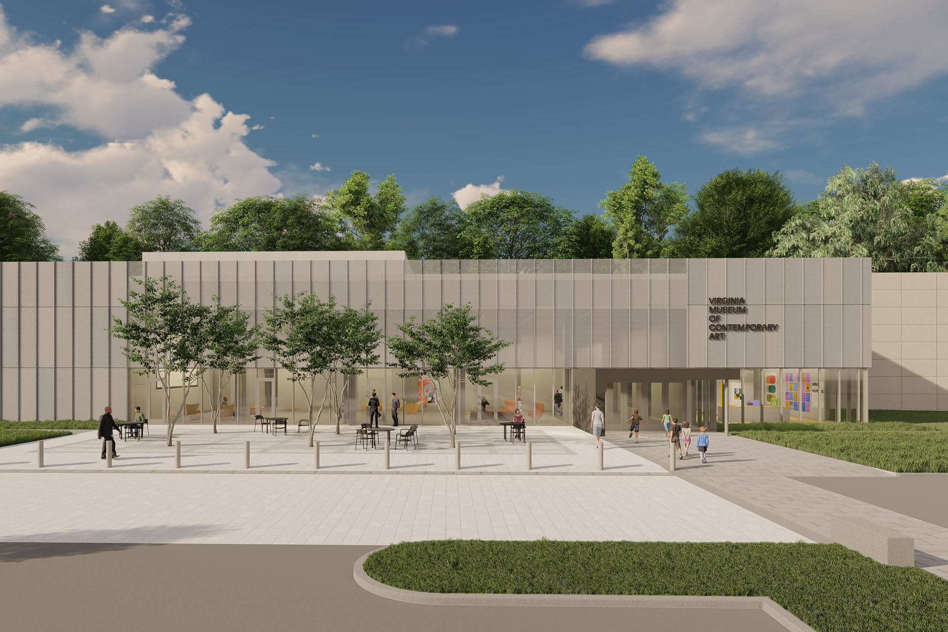 The new Virginia MOCA museum emphasizes both visitor experience and operational efficiency with a welcoming layout, engaging educational spaces, and thoughtful accommodations for all. Key features include a sunlit atrium that leads to expanded gallery spaces, two large exhibition galleries, and an interactive ARTLab gallery. Virginia MOCA’s prized Chihuly sculpture will be prominently displayed, while four reimagined art studios and a versatile conference room provide creative flexibility. The increased square footage allows for more innovative exhibitions, supported by functional art handling areas, a workshop, clean room, and secure vault. Additionally, a catering kitchen and event storage accommodate receptions for up to 150 seated or 250 standing guests. Landscaped outdoor areas and flexible, bright workspaces for the museum’s creative team further enhance the space. A new plaza will offer opportunities for community engagement, artistic expression, and visitor relaxation, hosting outdoor installations, performances, workshops, social gatherings, and community events. The surrounding grounds will also feature outdoor sculptures. Overall, the new Virginia MOCA ensures a welcoming and enriching experience for visitors while optimizing productivity for staff.