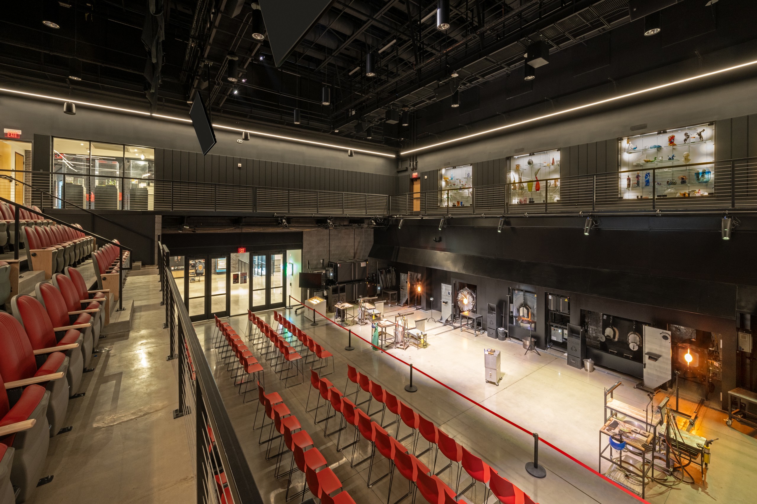 From day one, the construction of the Perry Glass Studio was a unique opportunity to create a space that merges artistry and craft with technical precision. The new 190-seat amphitheater-style hot shop, state-of-the-art classrooms, and dedicated cold- and flame-working areas were all constructed with a focus on flexibility, visibility, and long-term resilience. In addition to complex material integration—including curtain wall systems, terracotta panels, polished concrete, and formed metal paneling—our team carefully managed the logistics of construction adjacent to an active museum environment.