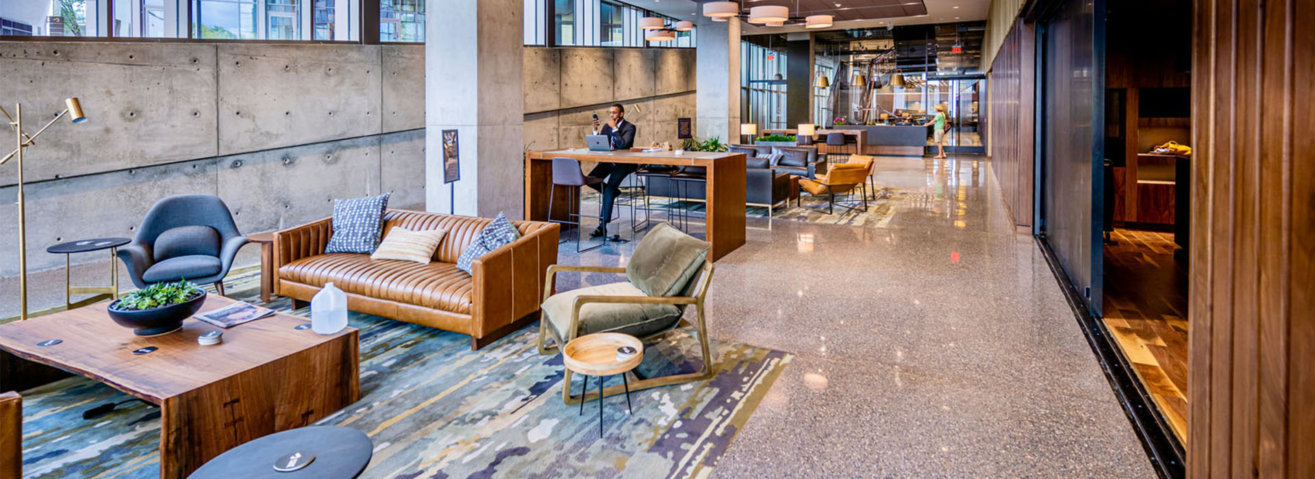 The CODE (Center of Developing Entrepreneurs) building is iconic—located on the west end of the Charlottesville Downtown Mall. It consists of Class A office space, co-working amenities, an auditorium, retail spaces, a green roof outdoor space and below-grade parking. The project also has a central courtyard area with public access and an amphitheater component for outdoor events.