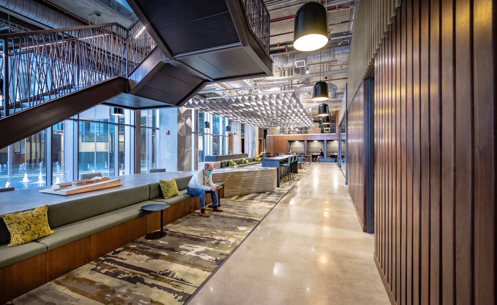 The CODE (Center of Developing Entrepreneurs) building is iconic—located on the west end of the Charlottesville Downtown Mall. It consists of Class A office space, co-working amenities, an auditorium, retail spaces, a green roof outdoor space and below-grade parking. The project also has a central courtyard area with public access and an amphitheater component for outdoor events.