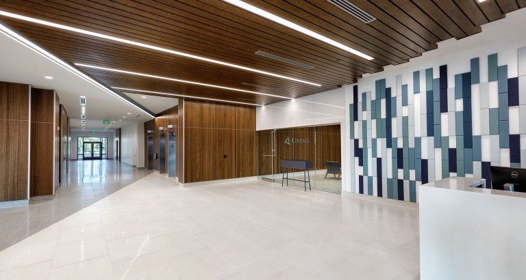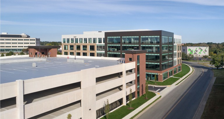 This design-build project provides Richmond-based specialty insurer Kinsale Insurance a new office headquarters facility, comprising 146,730 SF among 5 stories. Half of the building is occupied by Kinsale, while the other half will be leased to tenants. Interior scope of work included the fit-out of floors 4 and 5, as well as half of the 1st floor. The project also includes an approx. 210,000 SF, 4-level, 629-space open parking garage with entrances on two (2) sides to accommodate existing and future office building occupants.