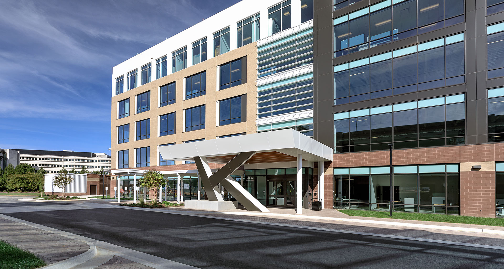 This design-build project provides Richmond-based specialty insurer Kinsale Insurance a new office headquarters facility, comprising 146,730 SF among 5 stories. Half of the building is occupied by Kinsale, while the other half will be leased to tenants. Interior scope of work included the fit-out of floors 4 and 5, as well as half of the 1st floor. The project also includes an approx. 210,000 SF, 4-level, 629-space open parking garage with entrances on two (2) sides to accommodate existing and future office building occupants.