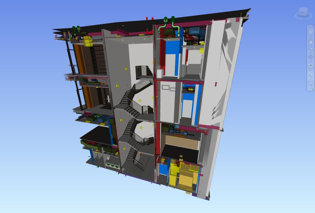 We use OpenSpace’s reality capture software to document and connect site information to project teams. With individual teams located across the country, members can “walk” the site from wherever they want. It’s a consolidated space for photos and project documentation used for understanding the project at a higher level. Reality capture lets us track change over time while confirming the accuracy of field installations. The coordinated BIM models can be compared to the field work to verify and highlight early, compliance and modifications that may need to be addressed. The project team walks the site as normal, but with a camera, to passively capture the space. From there, the project is brought to life on the OpenSpace platform with minimal user input. We also use the software to track key items and provide accurate data for scheduling and billing. Users can logon to the project and quickly assess the status of the job. This project has captured more than 10 hours of footage and over 75,000 photos throughout its life.