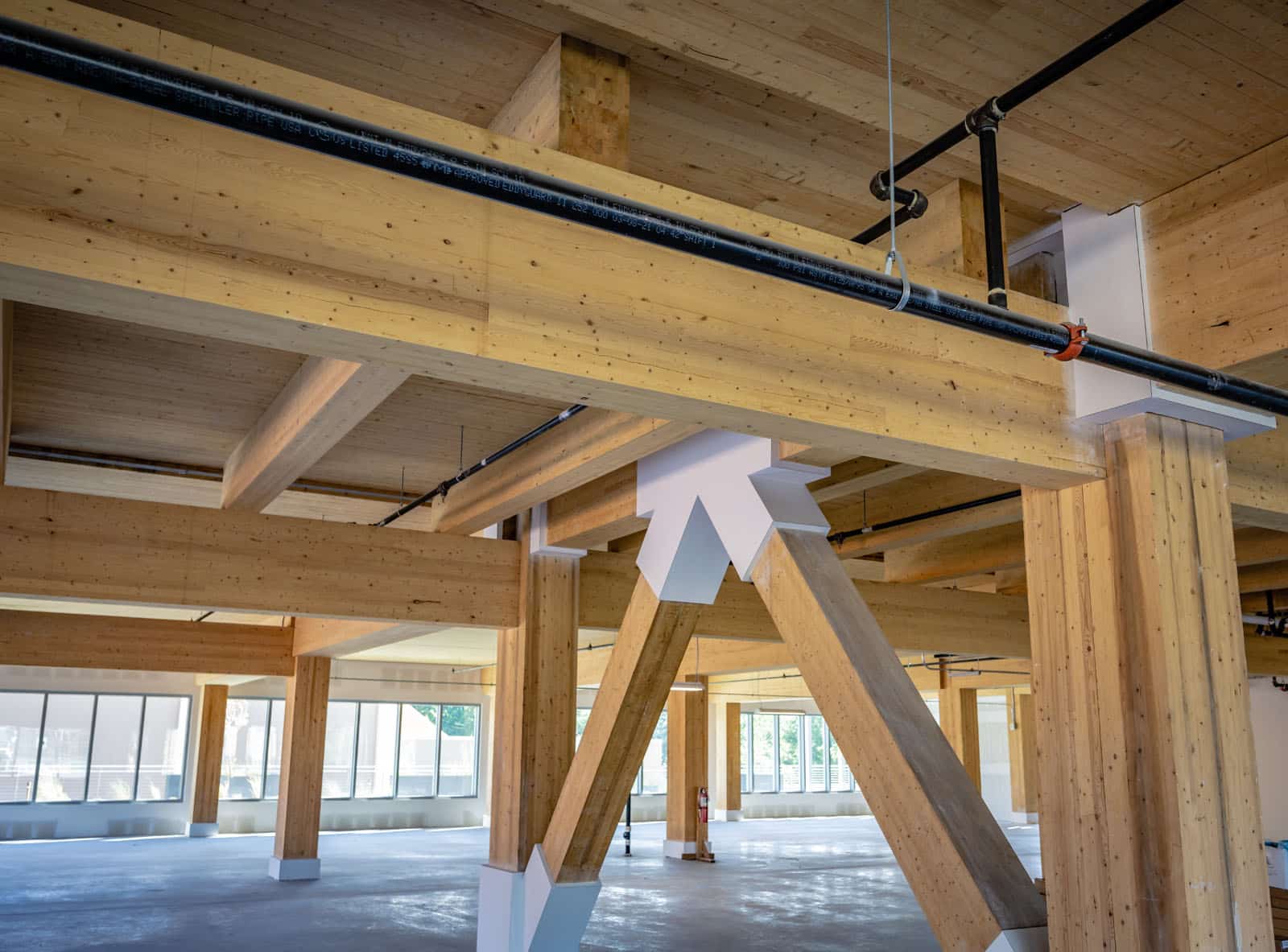 - Mass timber- Apex Plaza is comprised of cross-laminated timber (CLT) frame, which is sustainably harvested. The building gains a total potential carbon benefit of approximately 3,000 metric tons. Much like a healthy tree stores carbon dioxide, one square meter of CLT can remove approximately one ton of greenhouse gas from the atmosphere.