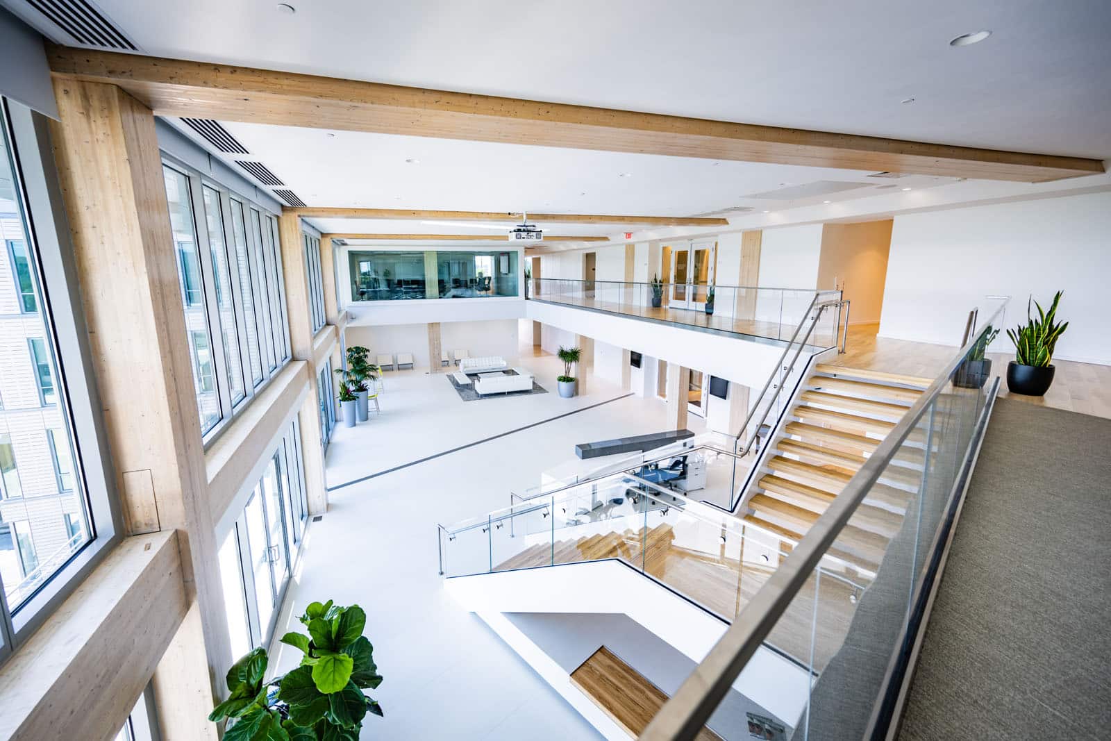 Communicating staircase between levels opening up to working/meeting space at Apex Plaza.