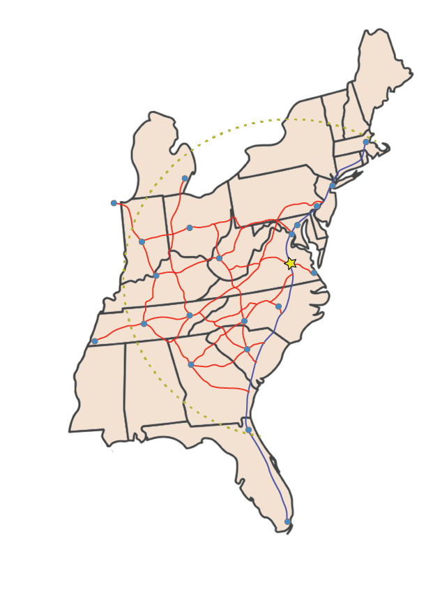 • Roadway: Four major interstate highways run in close proximity to Richmond, including I-95, I-64, I-85, and I-295 with quick connections to I-81 to access the West.